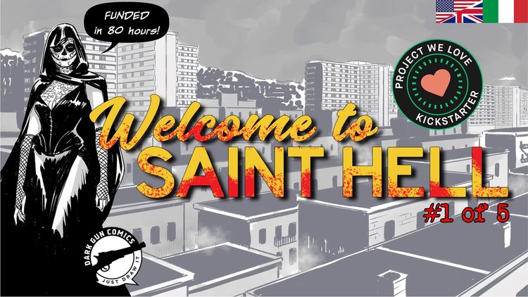 L’autoproduzione non dorme mai: già nel primo mese del 2022 stanno spuntando come funghi progetti nuovi di collettivi appena nati! È il caso di Dark Gun Comics, realtà indipendente formatasi nel 2021 che a gennaio 2022 ha lanciato il suo primo crowdfunding su Kickstarter. Lo scopo? Finanziare il primo albo di una miniserie di 5 numeri: Welcome to Saint Hell.